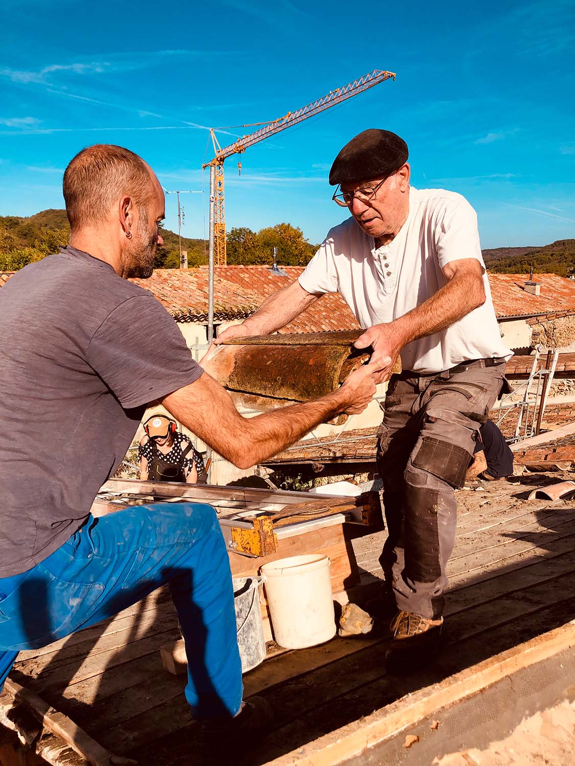 Les petites tuiles redescendent sur le plancher des vaches… ou dans la benne.