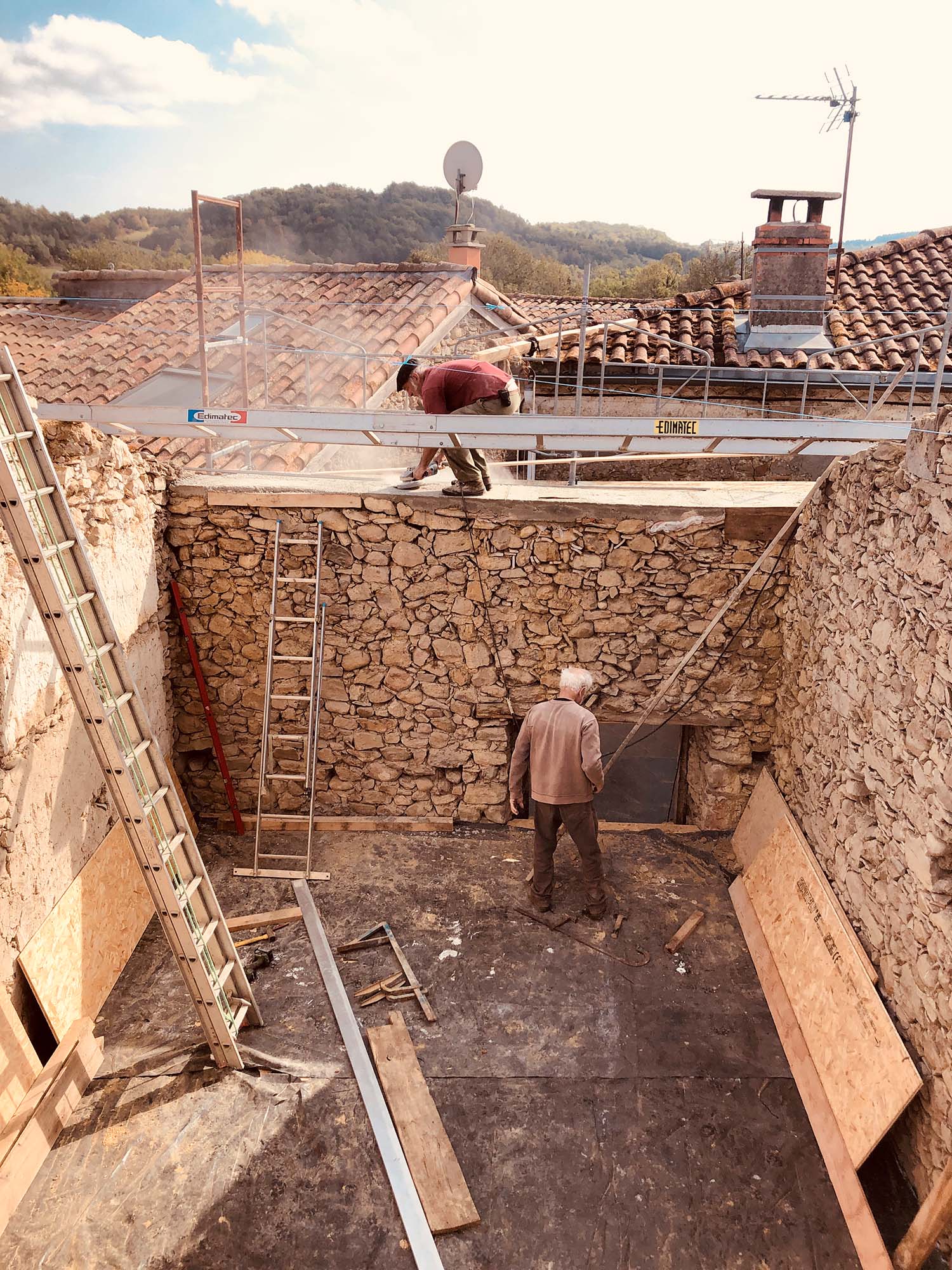 Alors… ça continue, arase par-ci, arase par-là. Du coffrage, du burin et de la sueur. avec de la bonne humeur, des ronchons et des cuisinier.es en or.